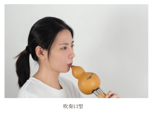 葫芦丝吹奏时,嘴型微笑状,吹嘴的三分之一长度入口即可。不要含吹嘴太多,方便吹奏练习。不鼓嘴,不翘嘴。不歪着嘴吹。葫芦丝吹嘴在嘴唇的中间位置。美观,得体,大方。