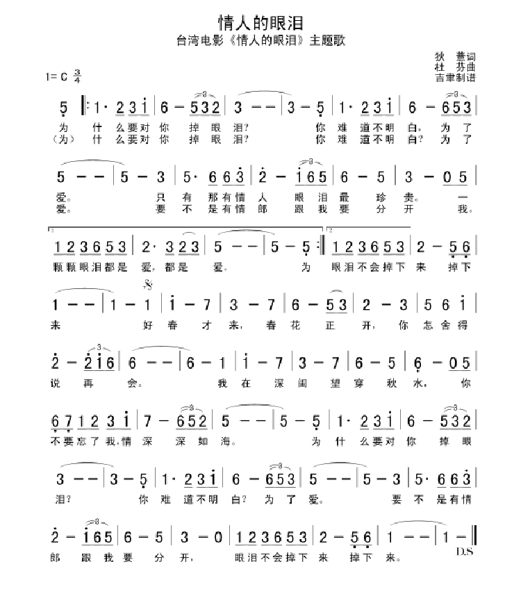 情人的眼泪 简谱